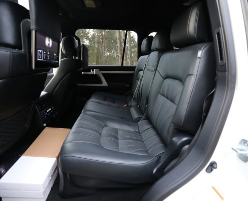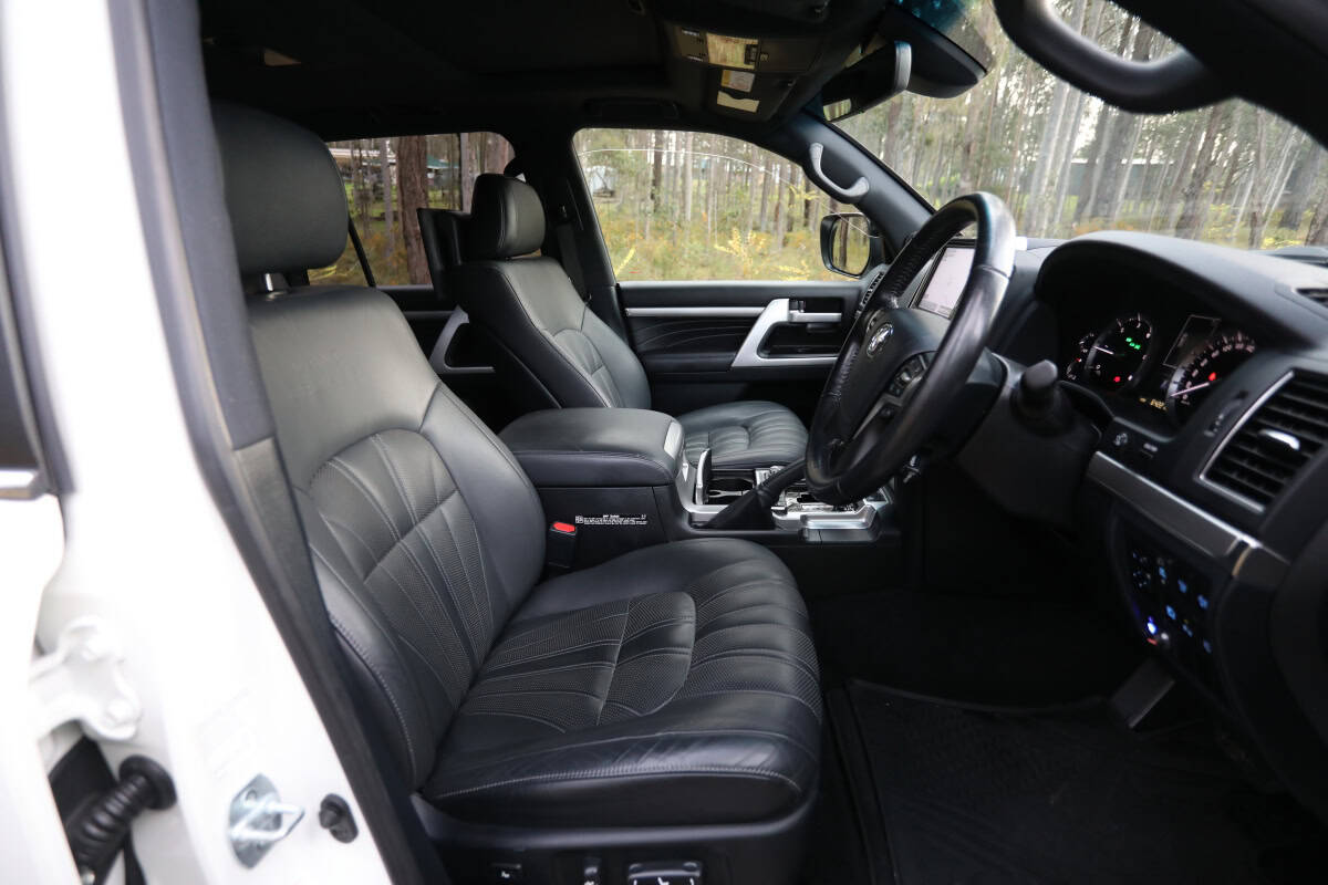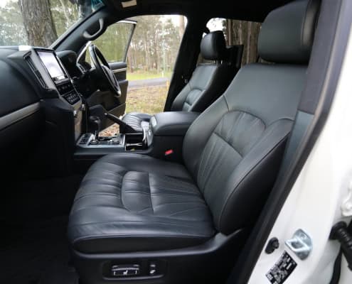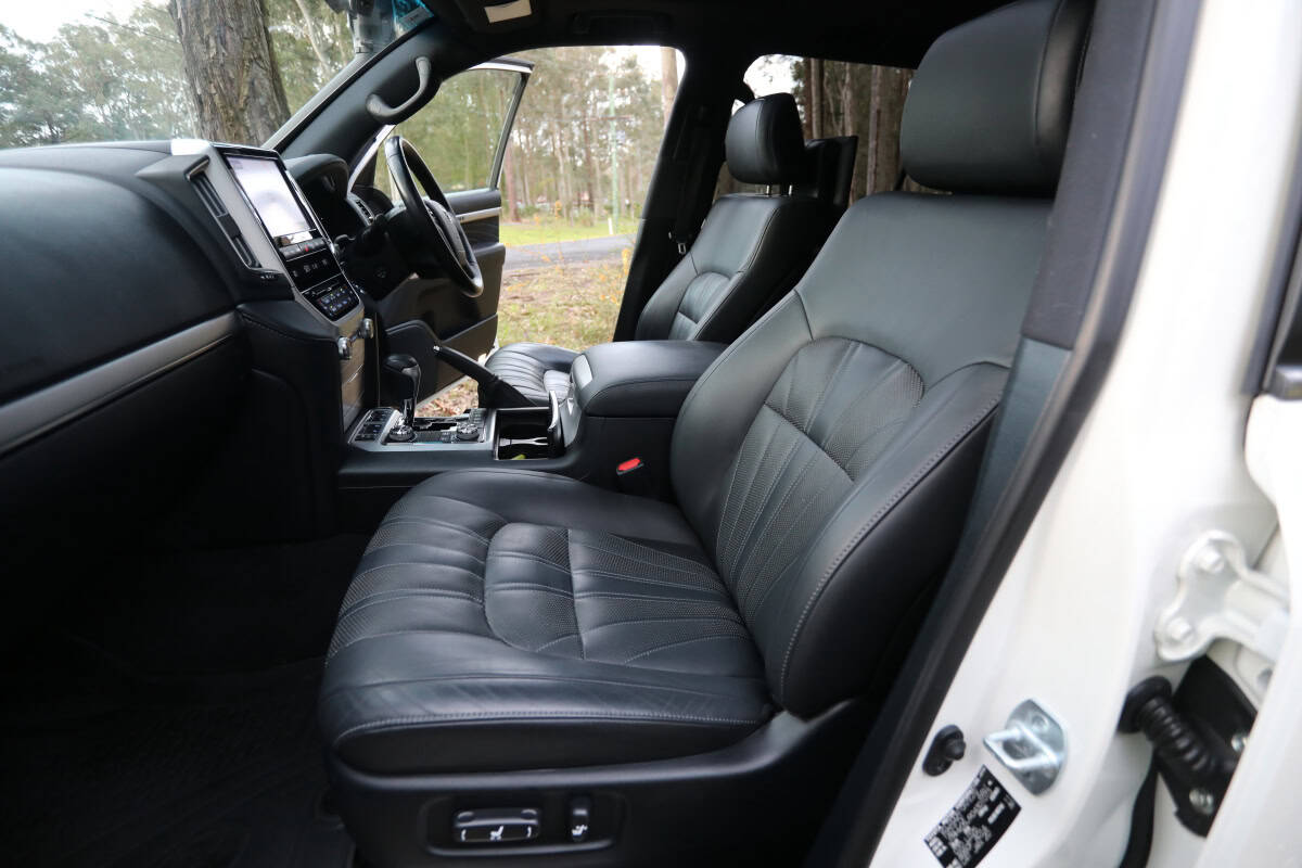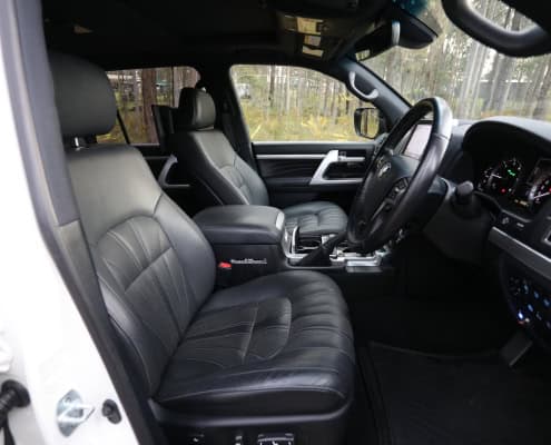 -Premium black semi-aniline leather-accented seats with unique stitching and “LandCruiser” embossed into the backrest.