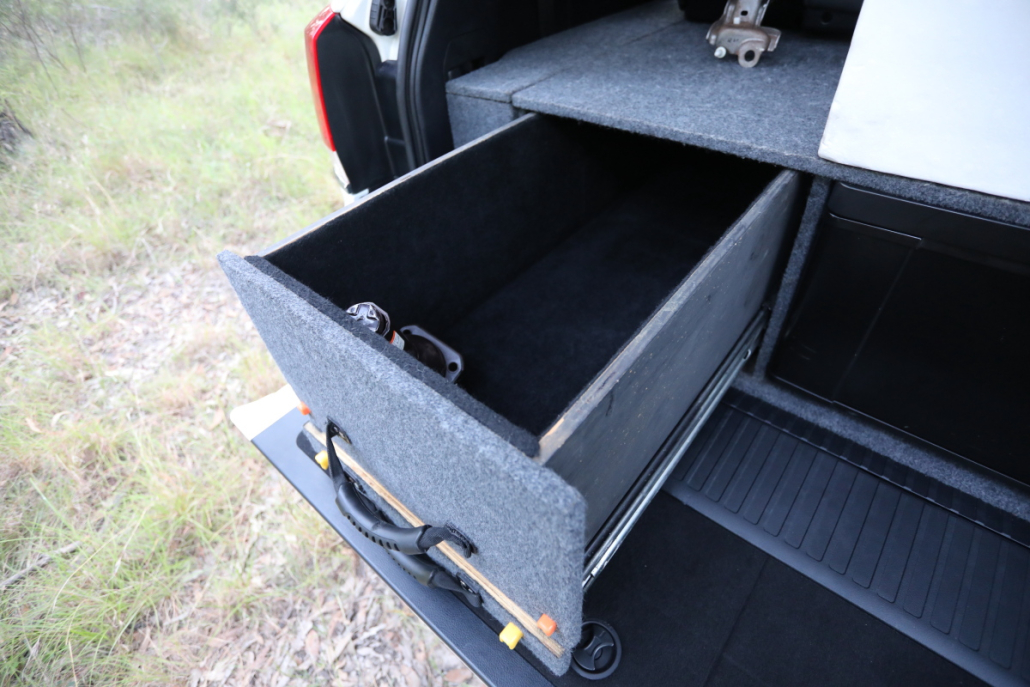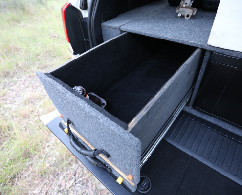 -Enerdrive 100Ah lithium battery system mounted in rear of vehicle with 20A Enerdrive DC/DC charger