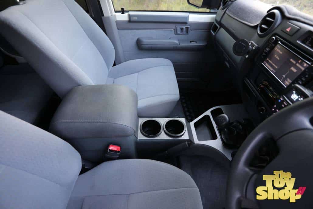 – Cruiser Consoles centre console upgrade with cup holders and USB Power outlet