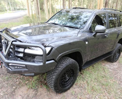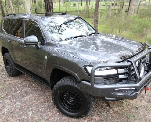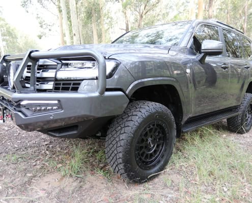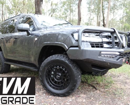 – 4000kg GVM increase using top of the range remote reservoir fully adjustable Dobinsons shocks, adjustable rear panhard rod, replacement upper front control arms, and BOSS rear airbags. Note that this is all NSW Engineer Certified, however can be certified in other states. Optional 4000kg towing upgrade at extra cost of $8500 with certification.