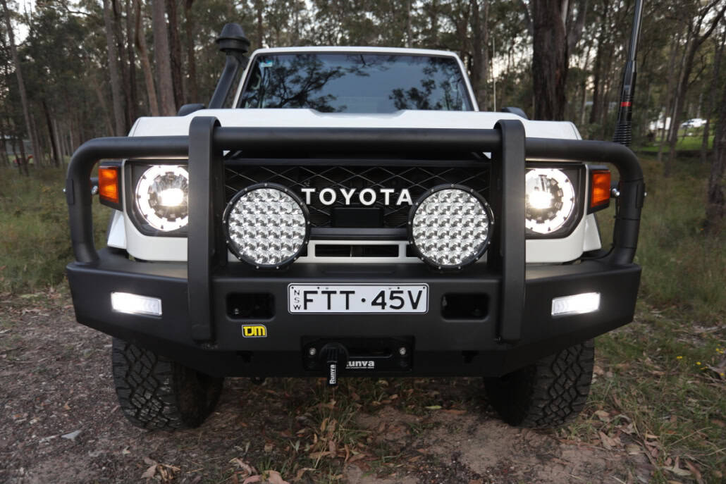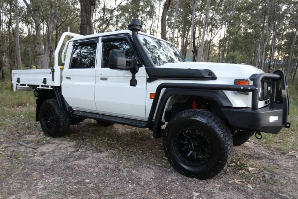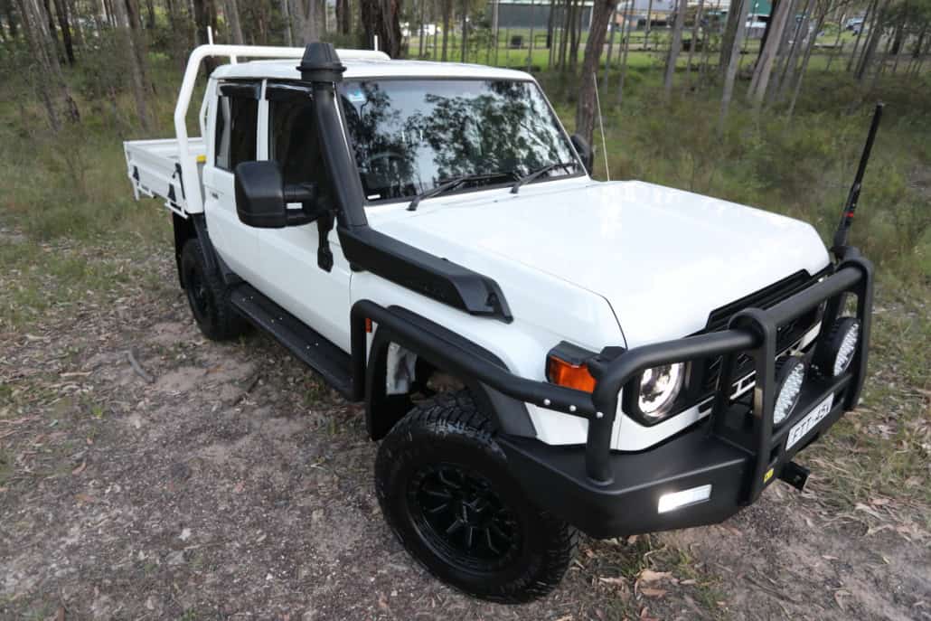 Landcruiser VDJ79 series facelift GXL dual cab, 4.5 V8 turbo diesel, bright white 5 speed manual, ABS and dual SRS airbags for your safety. Factory cruise control and hillstart assist, Lane keeping assist, speed sign recognition, GPS, front and rear factory fitted diff locks, icy cold air conditioning, fitted with the following extensive BRAND NEW accessory list: