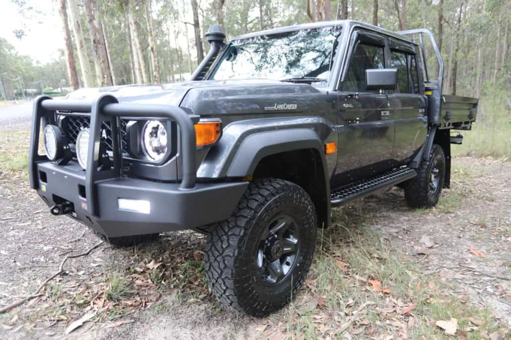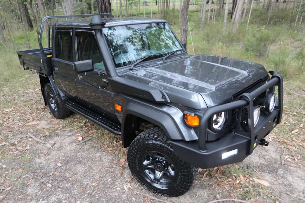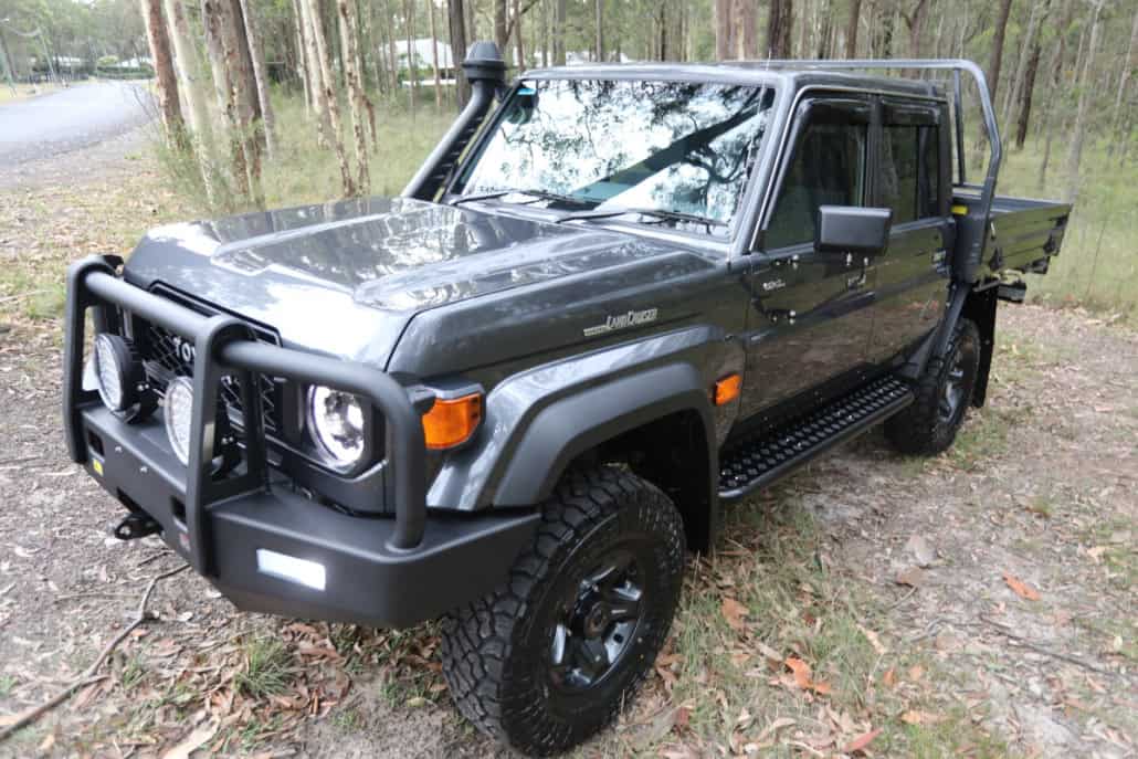 Landcruiser VDJ79 series facelift GXL dual cab, 4.5 V8 turbo diesel, ever popular graphite grey, 5 speed manual, ABS and dual SRS airbags for your safety. Factory cruise control and hillstart assist, Lane keeping assist, speed sign recognition, GPS, front and rear factory fitted diff locks, icy cold air conditioning, fitted with the following extensive BRAND NEW accessory list: